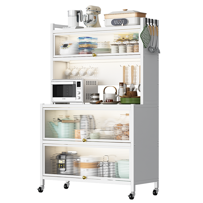 餐边柜:碳钢材质,适用于厨房,收纳各种厨房小家电以及餐具;也适用于客厅,收纳各种书籍,小物品;卧室,收纳书籍以及宝宝用品等。